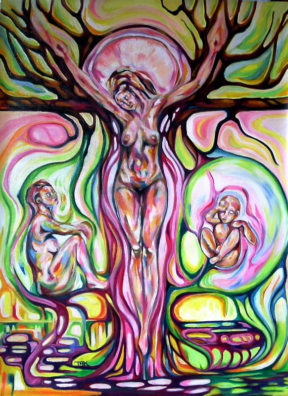 Triple Goddess. The eternal cycle of birth and death. there is no time that is not alive, all is connected. Birth brings forth Life, Life brings forth Birth, the continous wheel, without beginning, without end.
