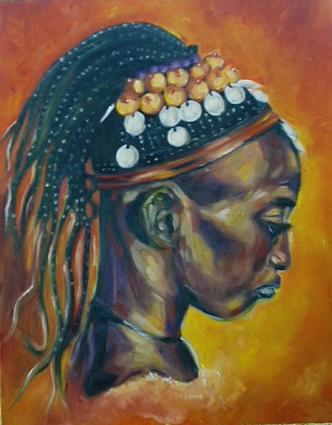 I have painted the Fulani Girl about 5 times all in, she is such a lovely image to try to capture. I have seem many other artists who have also chosen her to paint. I think it’s to do with the challenge of capturing her poise and beauty, the sensuality of her neck, the play of colour on her face, the ornamentation around her hair. The original photograph was in the National Geographic.